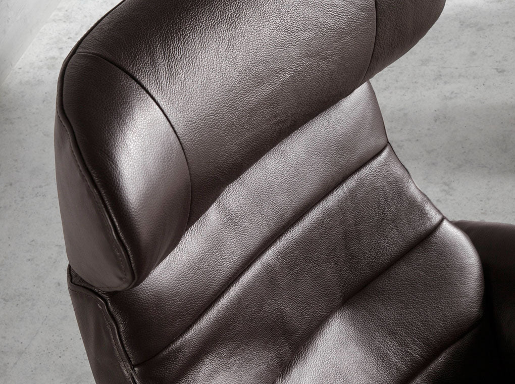 Esta poltrona possui um encosto de cabeça ajustável em altura, a combinação perfeita entre design e conforto.