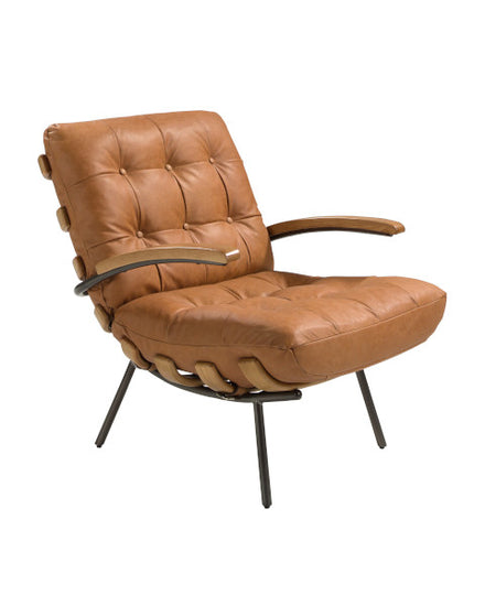 O acabamento acolchoado no encosto desta poltrona confiante proporciona um toque diferente e exclusivo.