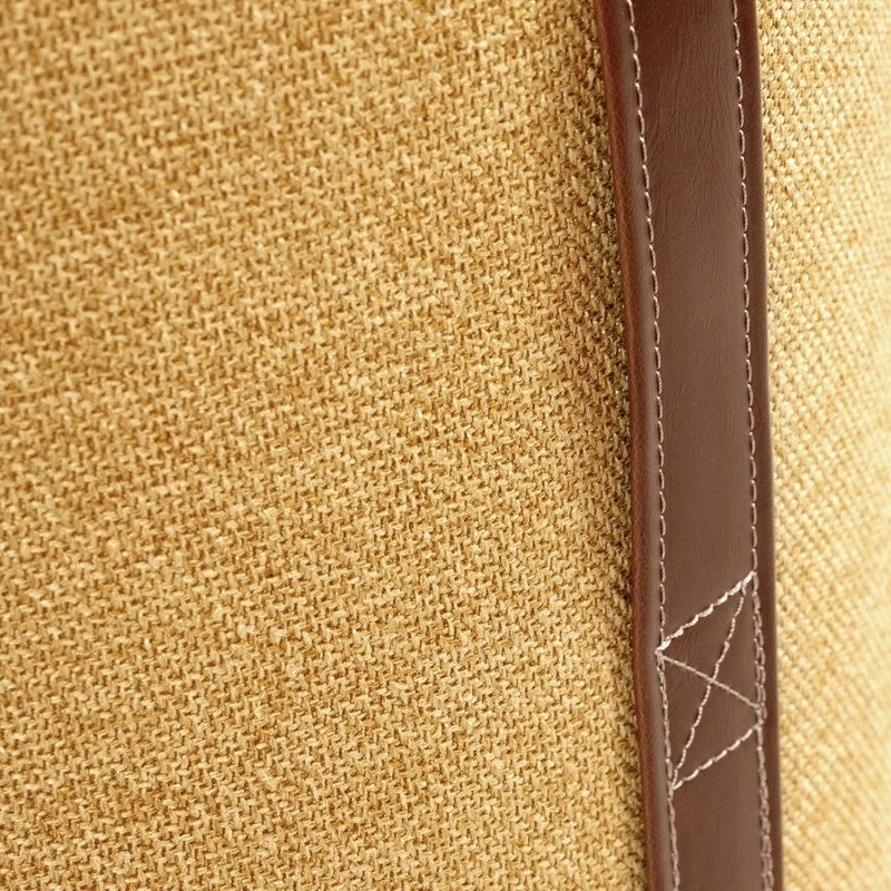 Esta pega, com uma costura em cruz no seu acabamento, permite-nos pegar e mover o puff confortavelmente.