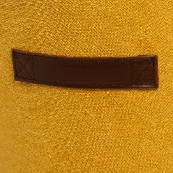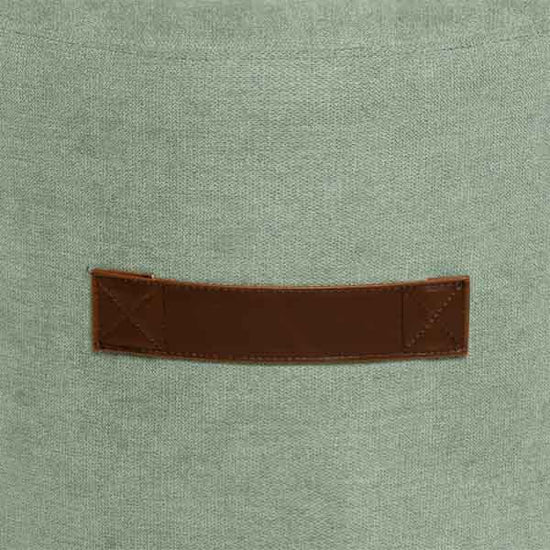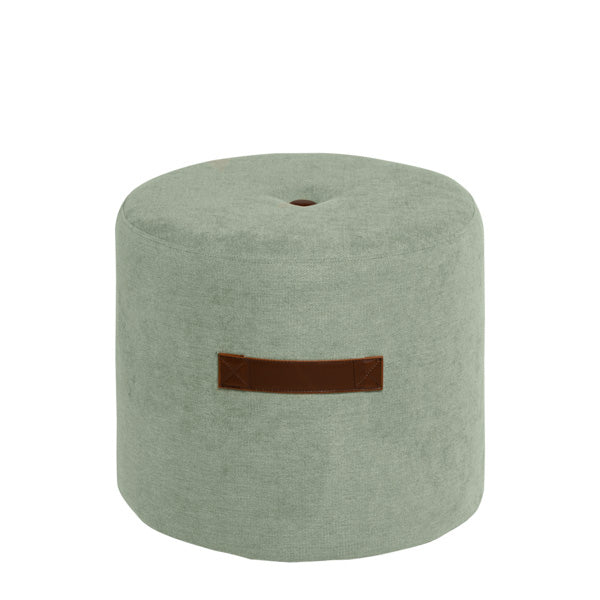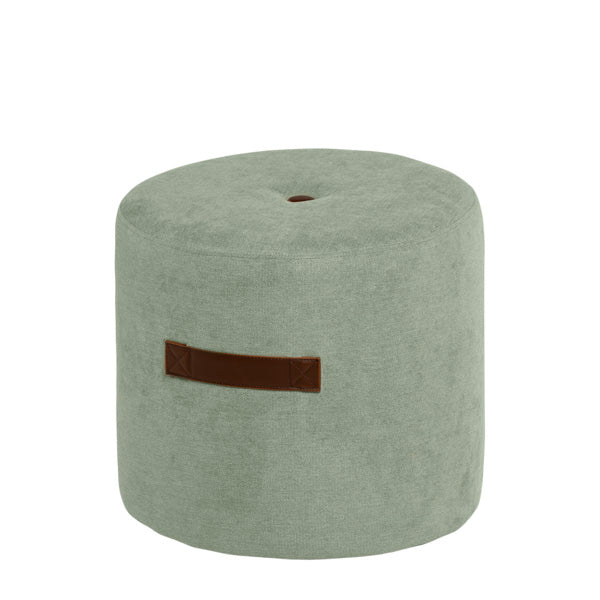 Esta pega, com uma costura em cruz no seu acabamento, permite-nos pegar e mover o puff confortavelmente. Por sua vez, e apenas como elemento decorativo, possui na parte superior um botão com o mesmo design e acabamentos da pega.